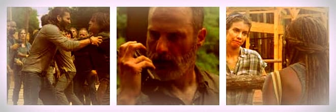 Tensions are continuing to run high, especially when some of the former Saviors get upset when they are told what to do.  Daryl clashes with one in particular and Rick has to break up a fight to keep the peace going.  Daryl has been trying to get through to Rick, but Rick has been trying so hard to keep his new world going.  Does that mean that he is willing to sacrifice his friendship with Daryl, however?  That doesn’t seem to be the case, as Rick is later confronted with the very same man after Aaron is severely injured because of this man’s negligence on the Walkie.  Rick tells him that he has met men like him before when he was a cop and we finally get a glimpse of the bad-ass Rick Grimes that we all love so much.  Rick tells him to leave the camp and warns him, “If I see your face again, stitches won’t fix what I do to you.”  Rick stands up for Daryl here, but he also recognizes that not everyone is on board with the new world he is creating.  While Rick doesn’t believe in executing others, he is willing to banish them to get his point across.  While I appreciate what Rick is trying to build here in his community, he also needs to remember that not everyone has the best intentions and he has to protect the people around him.  Don’t lose that edge just yet Rick.