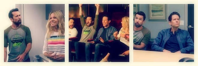In Wednesday night’s episode, “Thunder Gun 4:  Maximum Cool,” the gang is selected for a focus group, as they prepare to view a new movie coming out.  Initially the gang seems skeptical, but once they see the title…all bets are off.  My top 5 moments from It’s Always Sunny in Philadelphia season 14 episode 2 are: